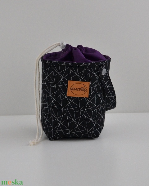 Kis méretű behúzós projekt táska kézimunkához (geometrikus lila behúzóval)