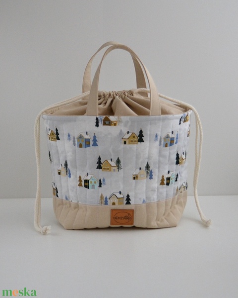 Nagy méretű behúzós projekt táska kézimunkához (téli házas)
