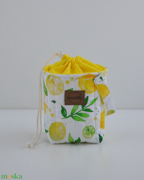 Kis méretű behúzós projekt táska kézimunkához (citromos)