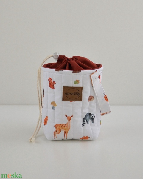 Kis méretű behúzós projekt táska kézimunkához (erdei állatos)