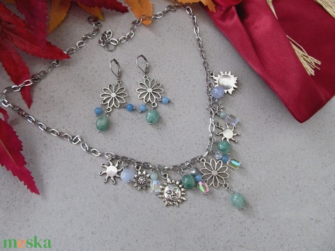 „Harmónia varázsa” charm ékszerszett – különleges kézműves alkotás akvamarin és aventurin kövekkel