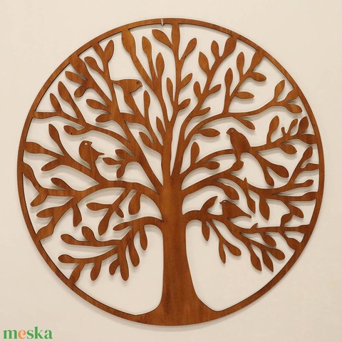 Életfa falikép - Egyenes törzsű, madárkákkal