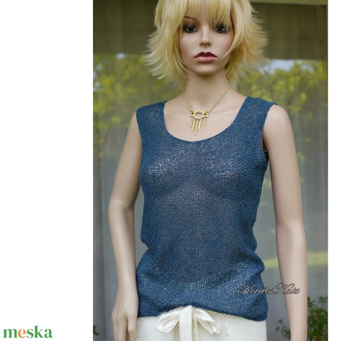 ITO KINU TOP - exkluzív kézzel kötött 100% selyem bourette felső, pulóver / pacific