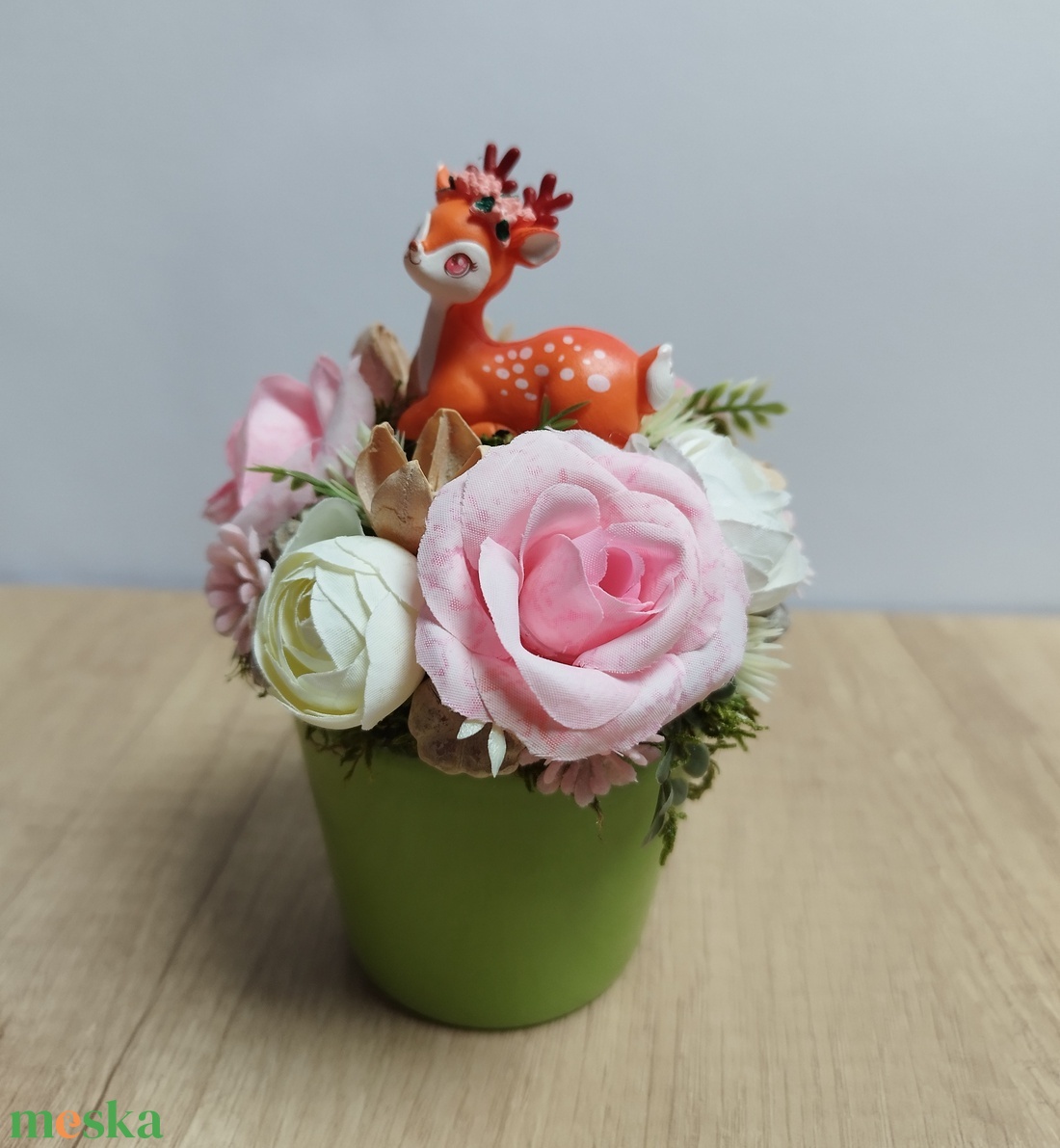 - Anyaga: kerámia kaspó, selyemvirág, száraz virág, gyanta őzike