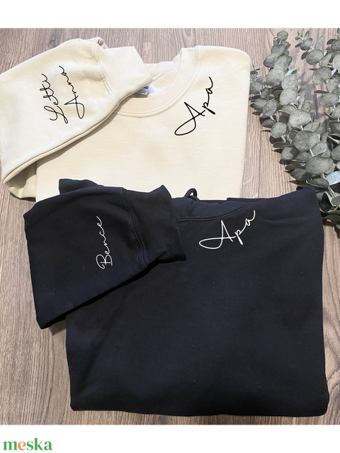 Személyre szabható, feliratos pulóver – Egyedi ajándék anyának, mamának, apának, papának - Nyomtatott mintával