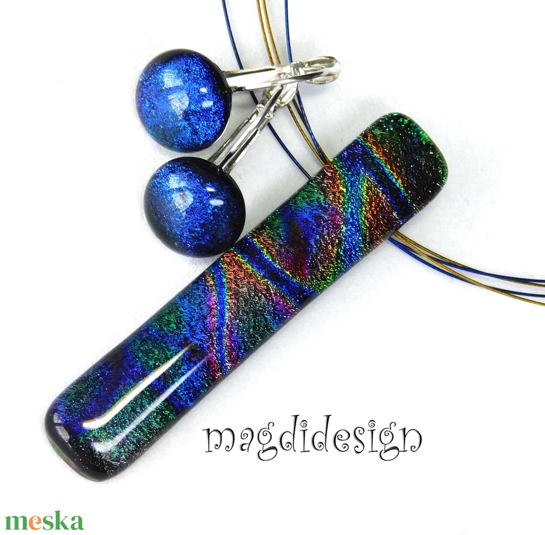 Szivárványos színjáték üvegékszer szett, nyaklánc, kapcsos fülbevaló