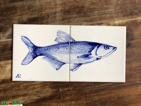 Kézzel festett mázazott portugál csempekép hal, 2 db-os kompozíció