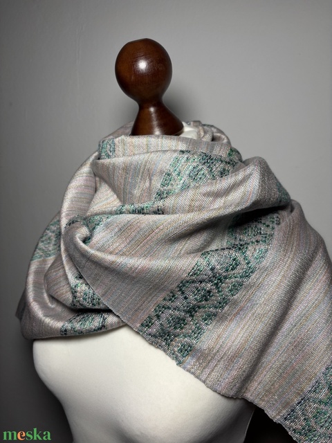 Kézzel szőtt elegáns púder Rózsaszín Zöld Selyem Kendő