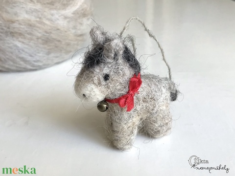 Tűnemezelt mini szamár - aranyos karácsonyfadísz