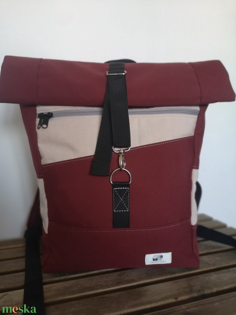 Bordó-púderrózsaszín vízálló rolltop hátizsák