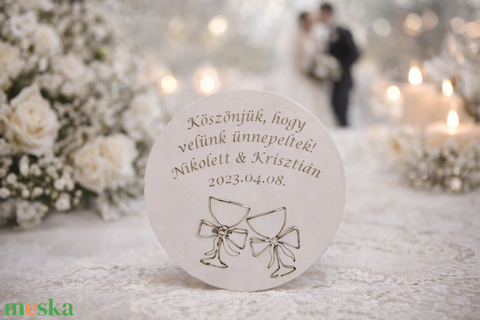 Esküvői Poháralátét, Köszönőajándék (Dátum,Név)
