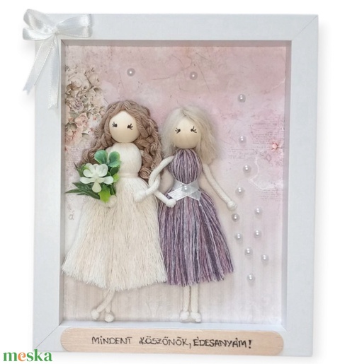 - Anyag/Összetevő makramé fonal, fa golyó, papír dekor, gyöngy, képkeret