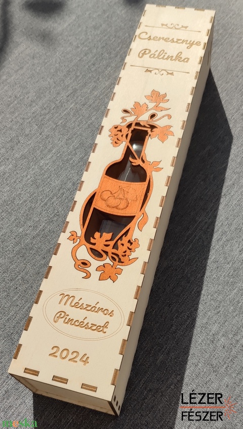 Egyedi pálinkás díszdoboz gravírozott motívummal – többféle gyümölcshöz