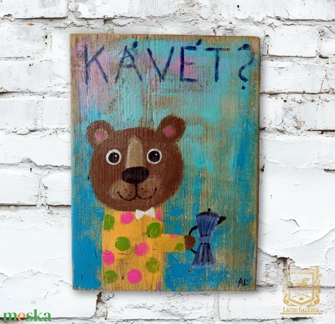 Ki kér Kávét? - Rusztikus Fatábla, Vicces Ajándék ötlet - Egyedi Falidísz, Konyha, Medve, Mackó