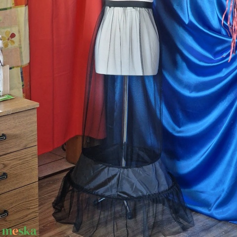 ESKÜVŐ ASZ82 - kb. 60cm-es 1 körös fodros fekete tüll alsószoknya, abroncs