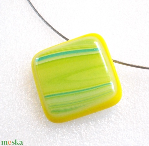 Sárga-zöld csíkos nyaklánc, ajándék névnapra, születésnapra.