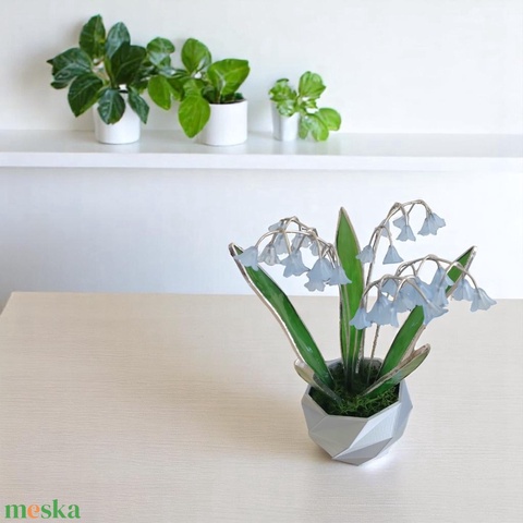 - Anyaga: színezett üveg, akril, gipsz, izlandi zúzmó, fém huzal