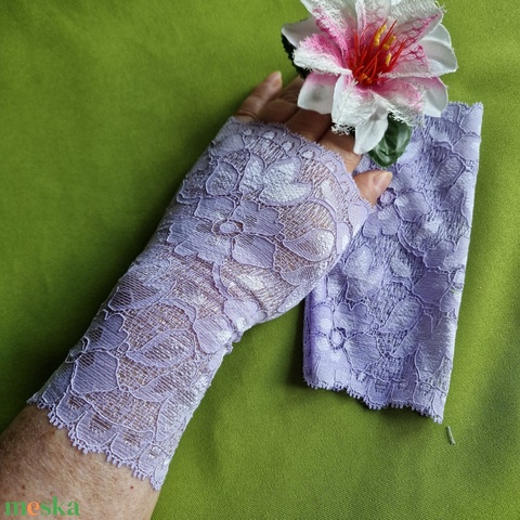 ESKÜVŐ KTY59 – 17cm-es ujjatlan levendula lila színű csipke kesztyű
