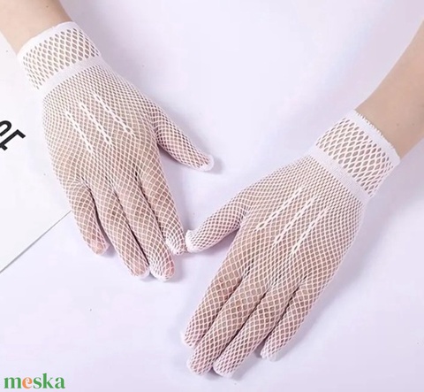 ESKÜVŐ KTY95 - kb. 25cm-es hálós fehér csipke kesztyű