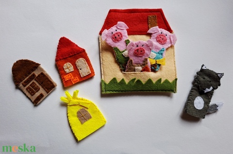 A három kismalac és a farkas - c. meséhez filc ujjbáb készlet, Mini Színház