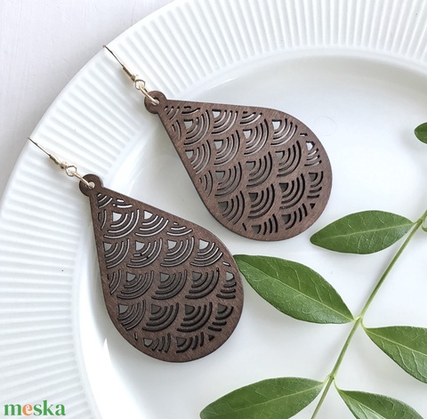 Természetes fa fülbevaló, hullámok mintás - Mesedoboz