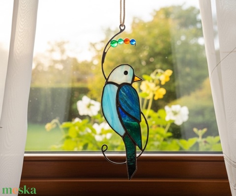 " KÉK MADÁRKA faágon" TIFFANY napfogó/ablakdísz a természet szerelmeseinek