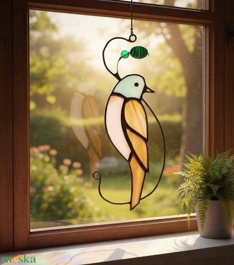 "MADÁRKA faágon" TIFFANY napfogó/ablakdísz a természet szerelmeseinek
