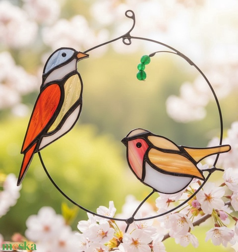 " MADÁRKÁK PÁRBAN" TIFFANY napfogó/ablakdísz
