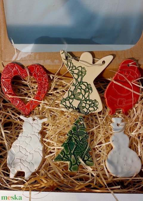Kerámia fenyőfadísz díszdobozban,6dbos