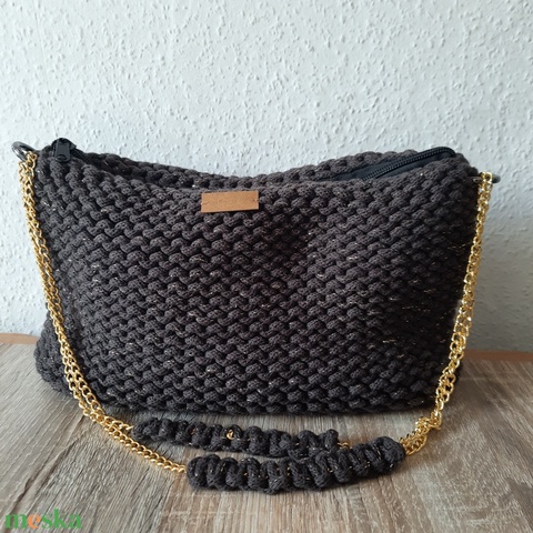 Kötött válltaska- fekete/arany