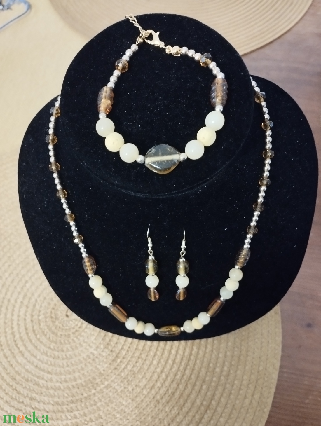 Ékszer szett lávakővel, jáde és üveg gyönggyel