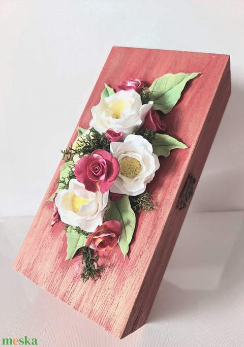 Ékszerdoboz,rózsa agyagvirágokkal díszítve !