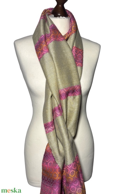 Kézzel szőtt Sárga Pink színátmenetes Selyem Kendő