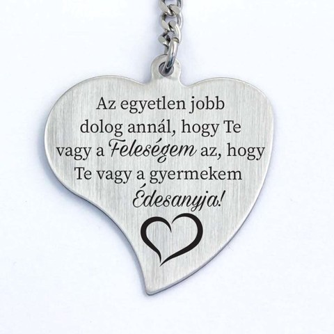 Feleségemnek Gyermekem Édesanyjának Gravírozott Szív Kulcstartó