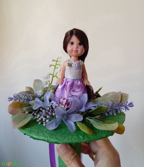 - Anyaga: művirág, karton, festett selyempapír, baba