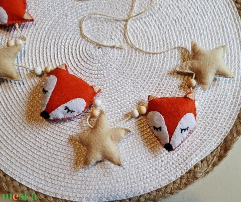 Alvó kisróka pofik- girland, fűzér, gyerekszobai, babaszobai dekoráció, bézs- narancs