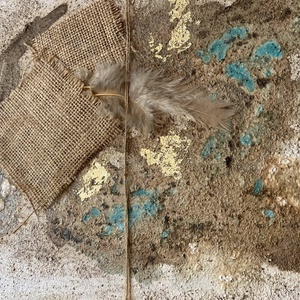 - Anyaga: strukturpaszta, juta, aranyfólia, akril, toll, kávé, vászon