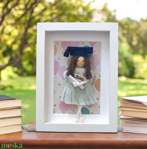 Ballagási ajándék - Személyre szabható makramé baba lufis háttérrel