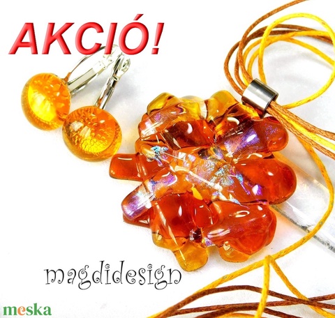 Mézes borzaska eozin üvegékszer szett, nyaklánc, kapcsos fülbevaló