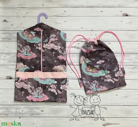 Unikornis mintás ovizsák és tornazsák szett - szürke