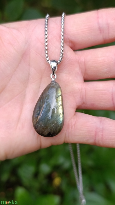 Csepp alakú AA minőségű labradorit medál nemesacél lánccal