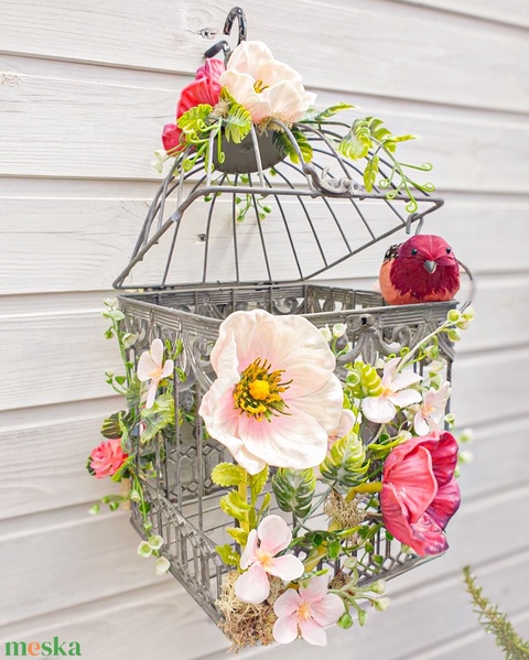 - Anyag/Összetevő fém kalitka, selyemvirágok