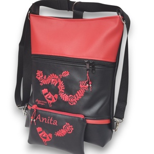 Magyar népmesék Hímzett 3in1 hátizsák univerzális táska névreszóló pénztárcával Fekete-piros