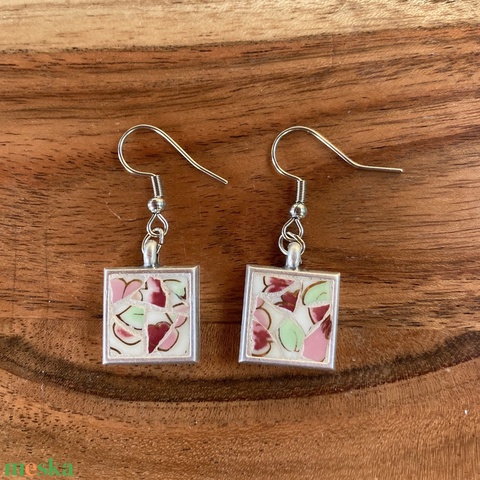 Zsolnay mentett darabok - mozaik fülbevaló - négyzetes, nemesacél akasztóval