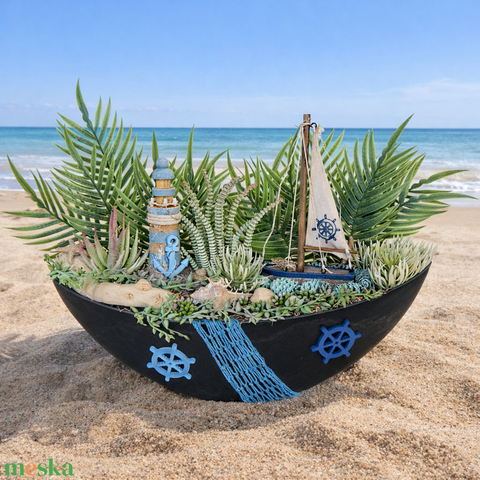 Nyári dekoráció csónak tálban