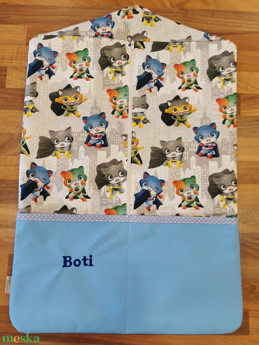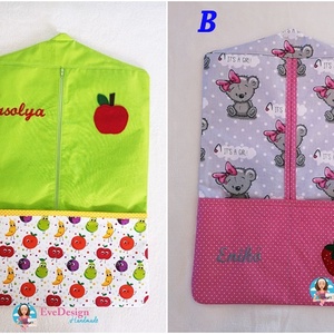 Csodaszép mintás pamut anyag és egyszínű pamut anyagból készült ez a praktikus vállfás tároló. Hozzá illő tornazsákkal is kérhető.