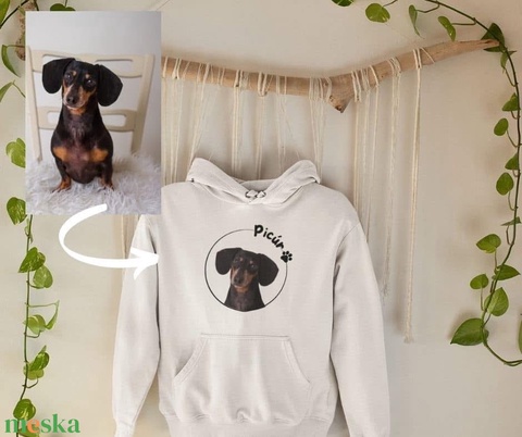 Saját fotóból pulóver egyedi grafikával - személyre szabható ajándék kutya gazdiknak - kutyás pulóver saját fotó alapján