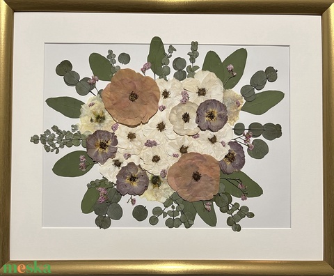 papír, virág, préselt virág, ragasztó, képkeret, keret, fa, műanyag