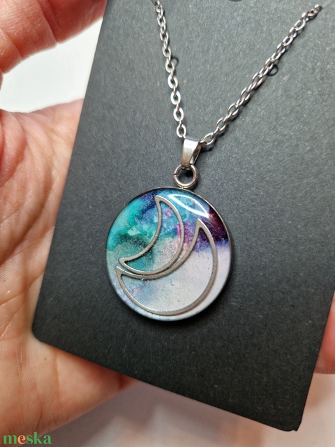 - Anyaga: szerelékek, lánc, medál alap, alkohol ink, epoxy