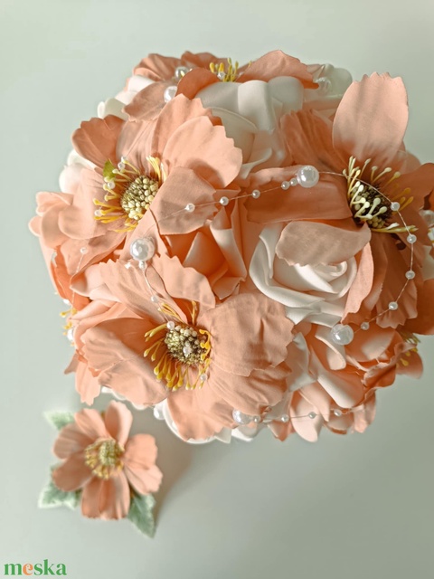 Menyasszonyi csokor, barack, fehér